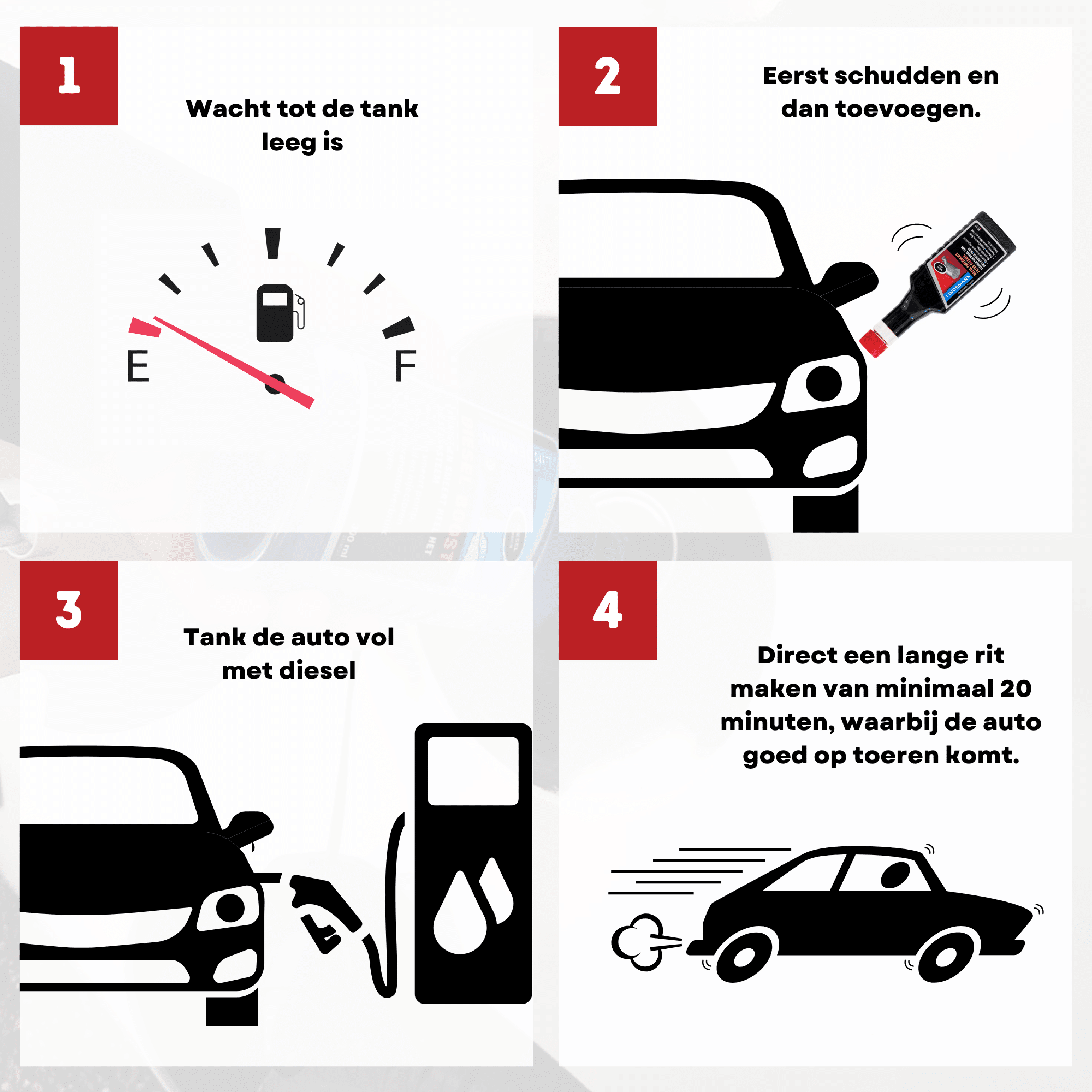 - Makkelijk: voeg 1 fles toe aan de dieseltank