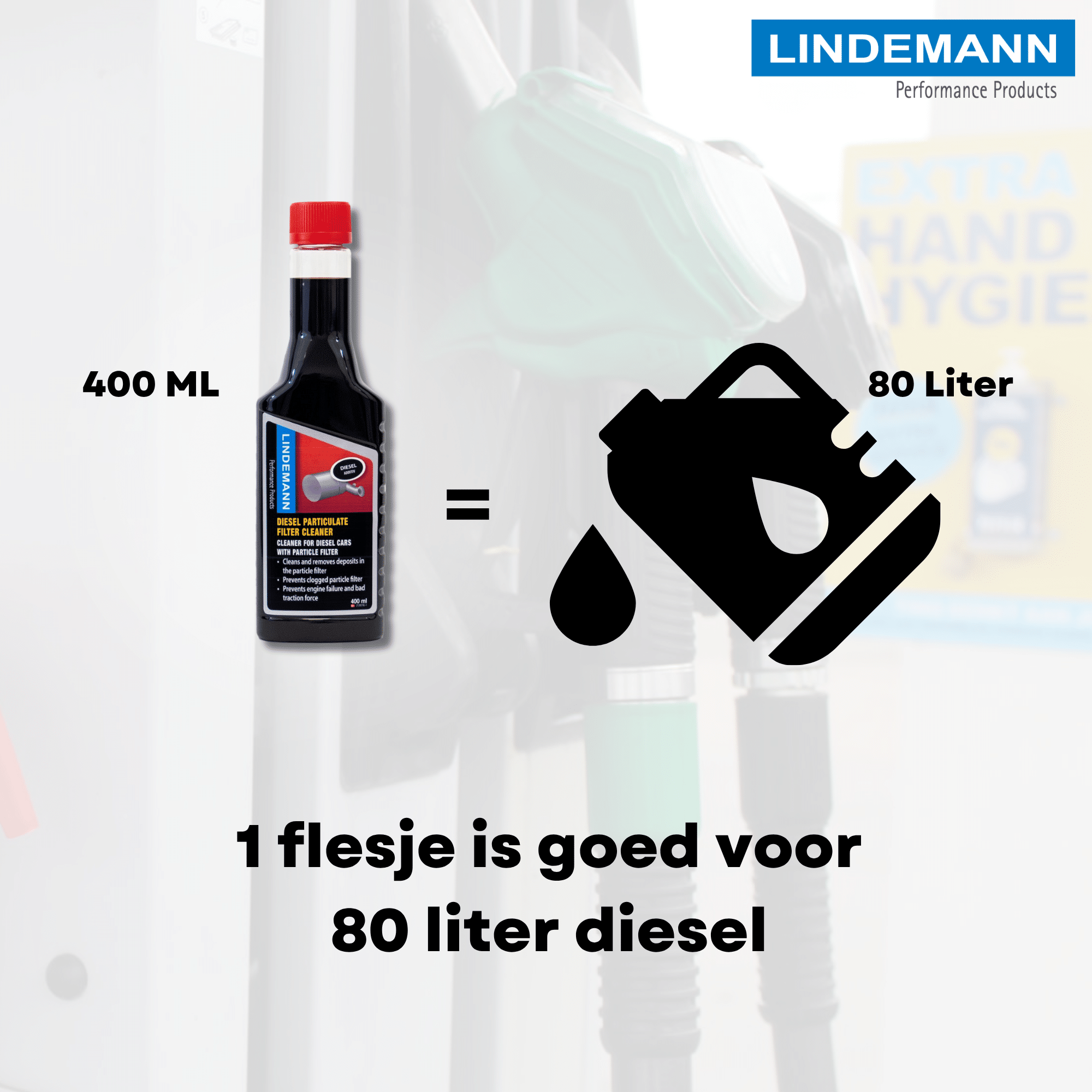 - Lindemann DPF Cleaner in de brandstoftank vullen vóór het tanken.